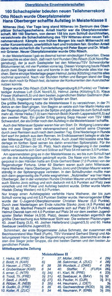 Ergebnis Oberpfalzmeisterschaft 1991 in Nittenau (Quelle: EuropaRochade):