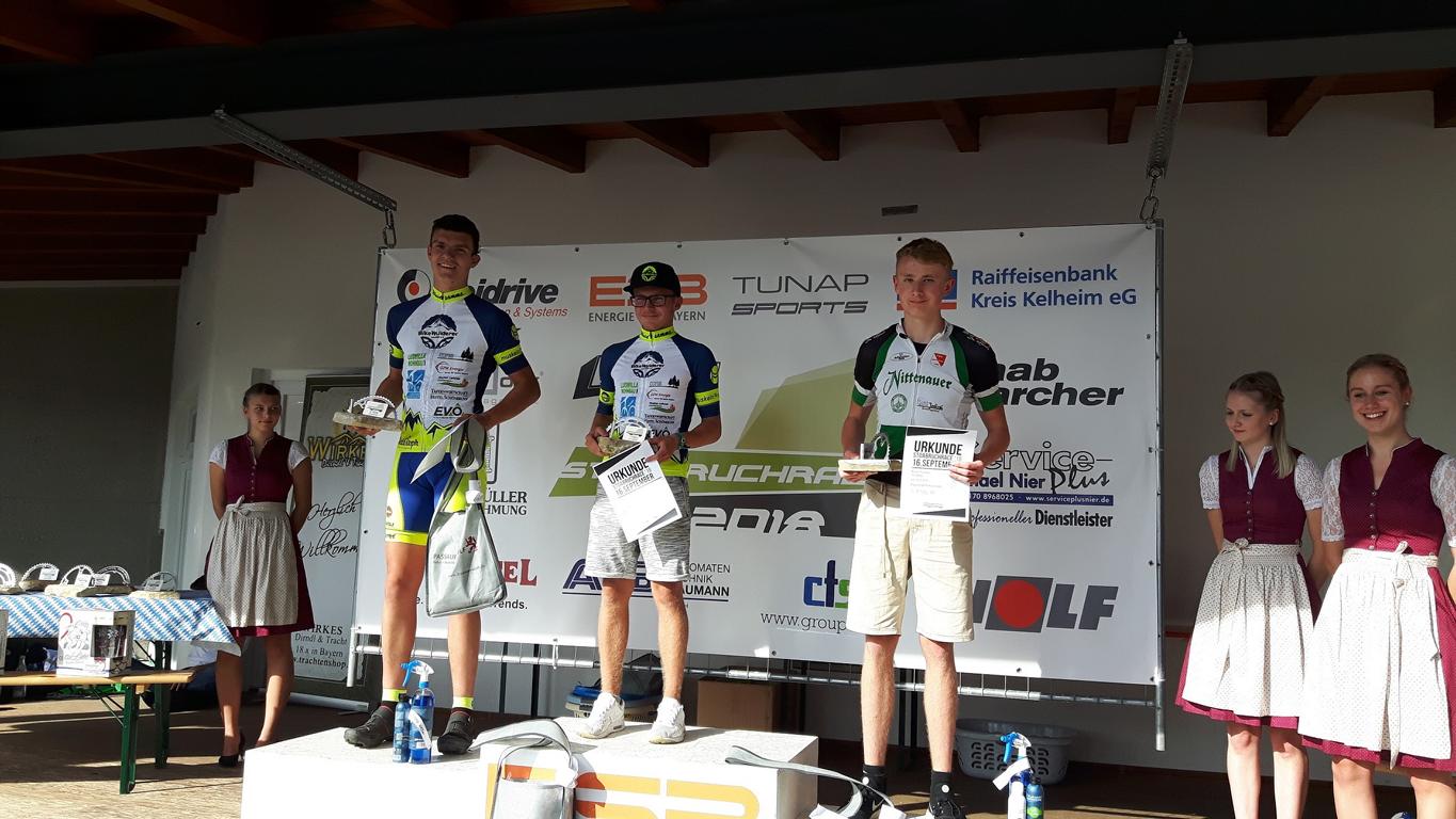 Auf der anspruchsvollen Strecke waren 14 Kilometern mit kräftigen Anstiegen zu meistern, so dass ein Gesamtanstieg von 505 Höhenmeter für die Fahrer der U19 zu überwinden war. Dieser Herausforderung stellten sich Tobias Markl und Paul Funke, die aufgrund des Alters keinen Hindernisparcours absolvieren mussten, um 14 Uhr. Beide konnten zunächst in der Führungsgruppe mitfahren. Funke musste diese jedoch Ende der ersten Runde ziehen lassen, da er aufgrund der matschigen Strecke und dem falschen Reifenprofil bergab sein technisches Geschick nicht umsetzen konnte. Markl kamen die vielen Höhenmeter und die steilen Anstiege der Strecke zugute. Er konnte sich ohne große Probleme in der Führungsgruppe halten. Beim letzten Anstieg entschied er sich für einen Ausreißversuch: Er sprinte den Konkurrenten am Berg davon und setzte sich klar von den Verfolgern ab. Dadurch konnte er den ersten Sieg in der Bayernliga einfahren. Paul Funke kam als erster der Verfolgergruppe auf Platz 5.